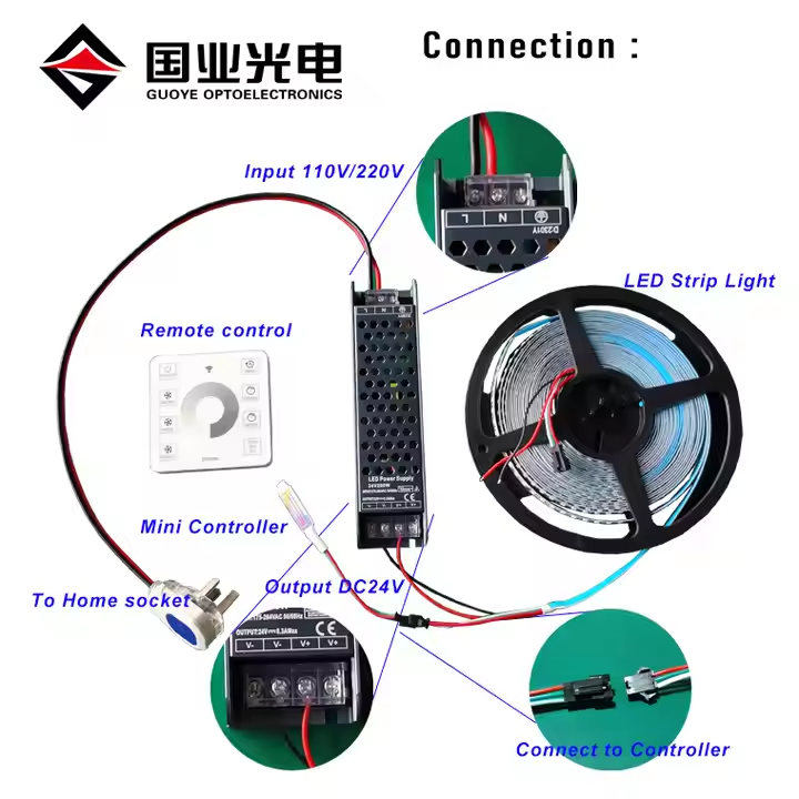 Conferma la tensione (come 12V o 24 V), potenza (potenza per metro) e lunghezza della striscia di luce e seleziona l'alimentazione appropriata in base alla potenza della striscia di luce. Ad esempio, se la potenza per metro della striscia della lampada è 10 W e la lunghezza è di 10 metri, la potenza totale è di 100 W e la potenza dell'alimentazione dovrebbe essere maggiore o uguale a 100 W.